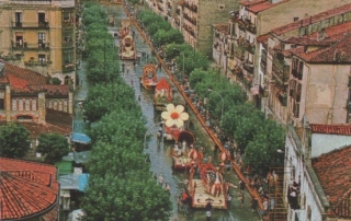 Me encanta esta postal de cuando la Batalla de Flores se celebraba en la «calle del paseo». Es del año 68, una de las últimas ediciones que se celebraron en ese emplazamiento y en donde 40 mil personas presenciaron el desfile a pesar de que la lluvia no paró ni un momento. Destacar también que Radio Popular transmitió en directo el desarrollo de la Batalla, algo que hasta ese momento nunca se había hecho.